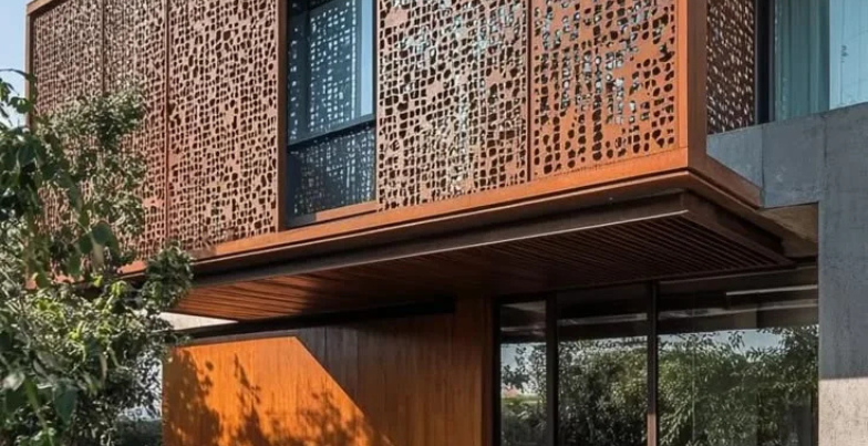 Stone cladding, terracotta, glass panels, and ACP are popular with modern design styles.